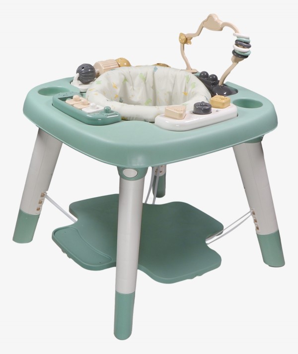 The seat is height-adjustable, so it grows with your child. The play tray includes spinning balls and a colorful bead spiral. Add batteries to activate fun music for even more entertainment!