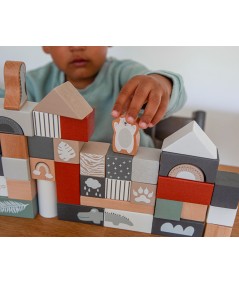Cet ensemble de blocs en bois amusant offre des heures de plaisir! L'ensemble se compose de pas moins de 50 blocs, avec lesquels les plus belles créations peuvent être réalisées. Un bouquin montrant des créations possibles est inclus, imitez-les! Les blocs ont chacun un imprimé unique avec une couleur branchée. Les blocs sont livrés dans un tonneau.