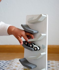 Deze leuke autobaan stimuleert de motoriek van je kleintje. Zigzaggend gaan de autootjes de baan af naar beneden! De leuke print van een leeuwtje en de moderne kleuren zorgen ervoor dat de slider een echte eye-catcher wordt in de kamer.