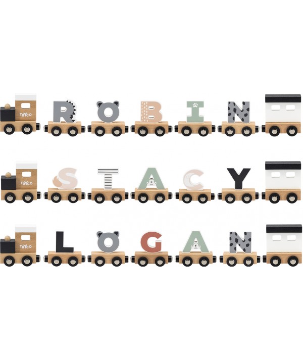 Stwórz swój własny pociąg magnetyczny z tymi zabawnymi drewnianymi literami! Każda litera jest wesoło pokolorowana pięknym motywem. Zacznij od lokomotywy, a zakończ na wagonie końcowym. Pociągi są wyposażone w magnes, dzięki czemu można je łatwo ze sobą połączyć.